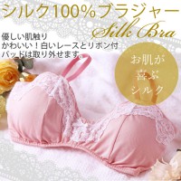 当店人気のシルク100%レース付ブラジャー。かわいくて落ち着いたトーンのきれいなピンク。美しい白いレースが、さわやかです。
